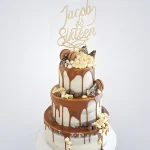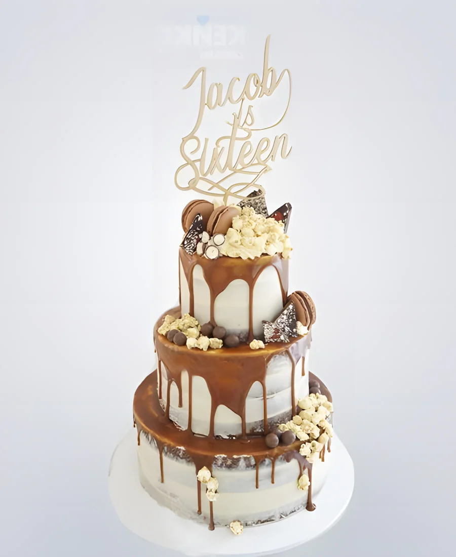 Высокий торт с глазурью и сладостями для мужчины на юбилей 30 лет
