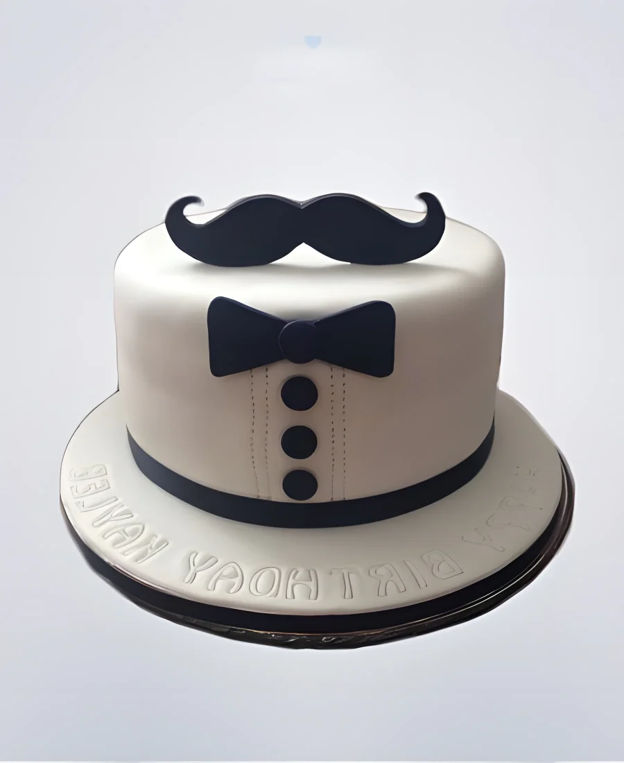 Торт на юбилей мужчине 30 лет с усами и галстуком-бабочкой