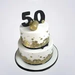 Бело-золотистый торт на юбилей мужчине 50 лет