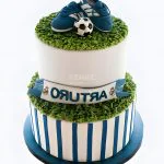 Двухъярусный торт с бутсами и футбольным мячом