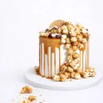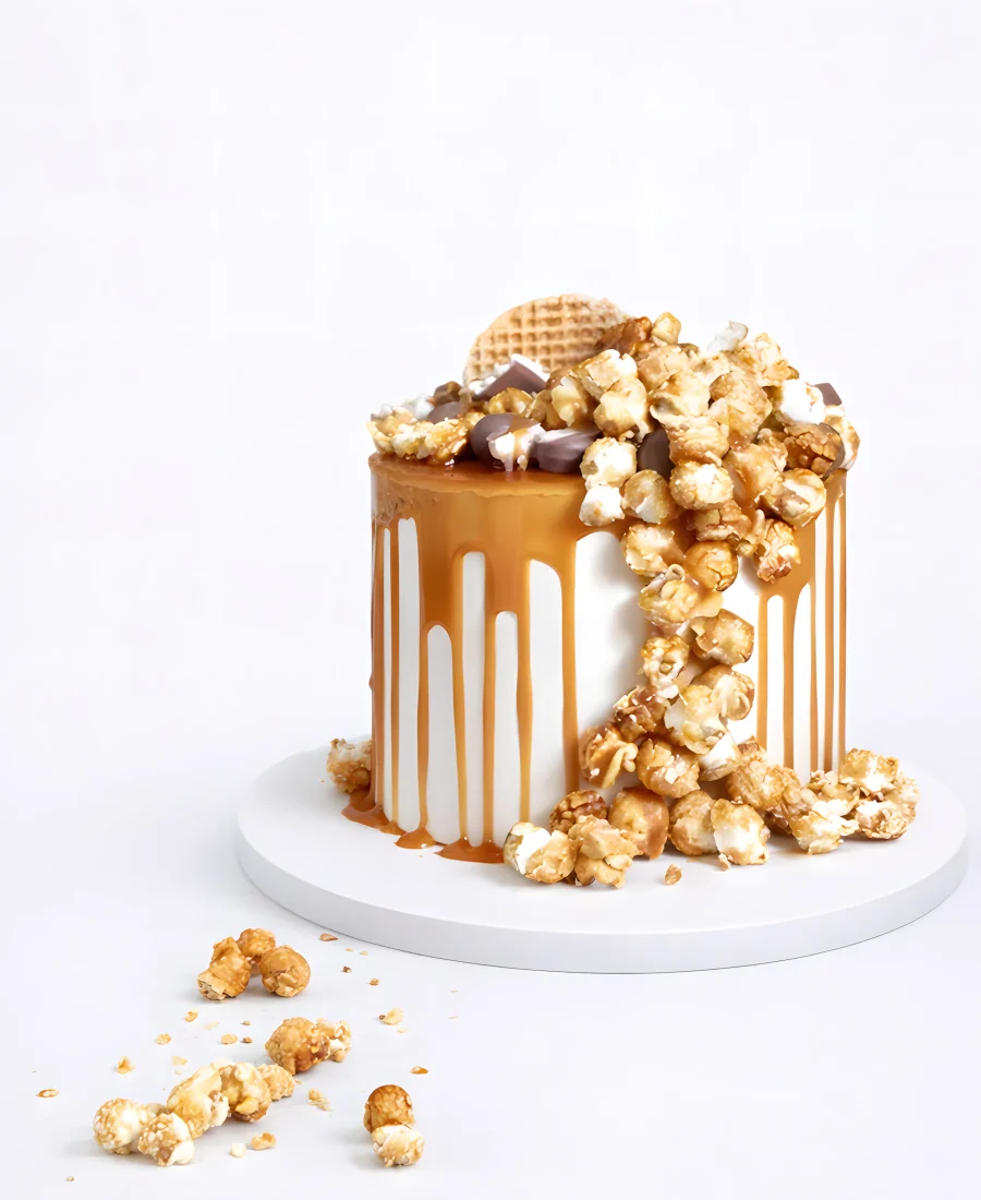 Белый торт с глазурью и попкорном