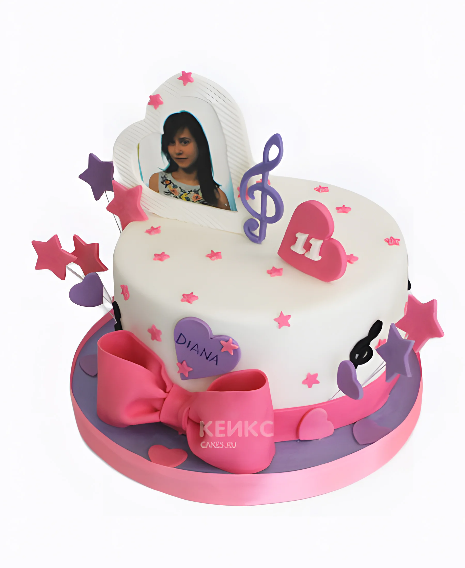 Торт музыка с фотопечатью и бантом
