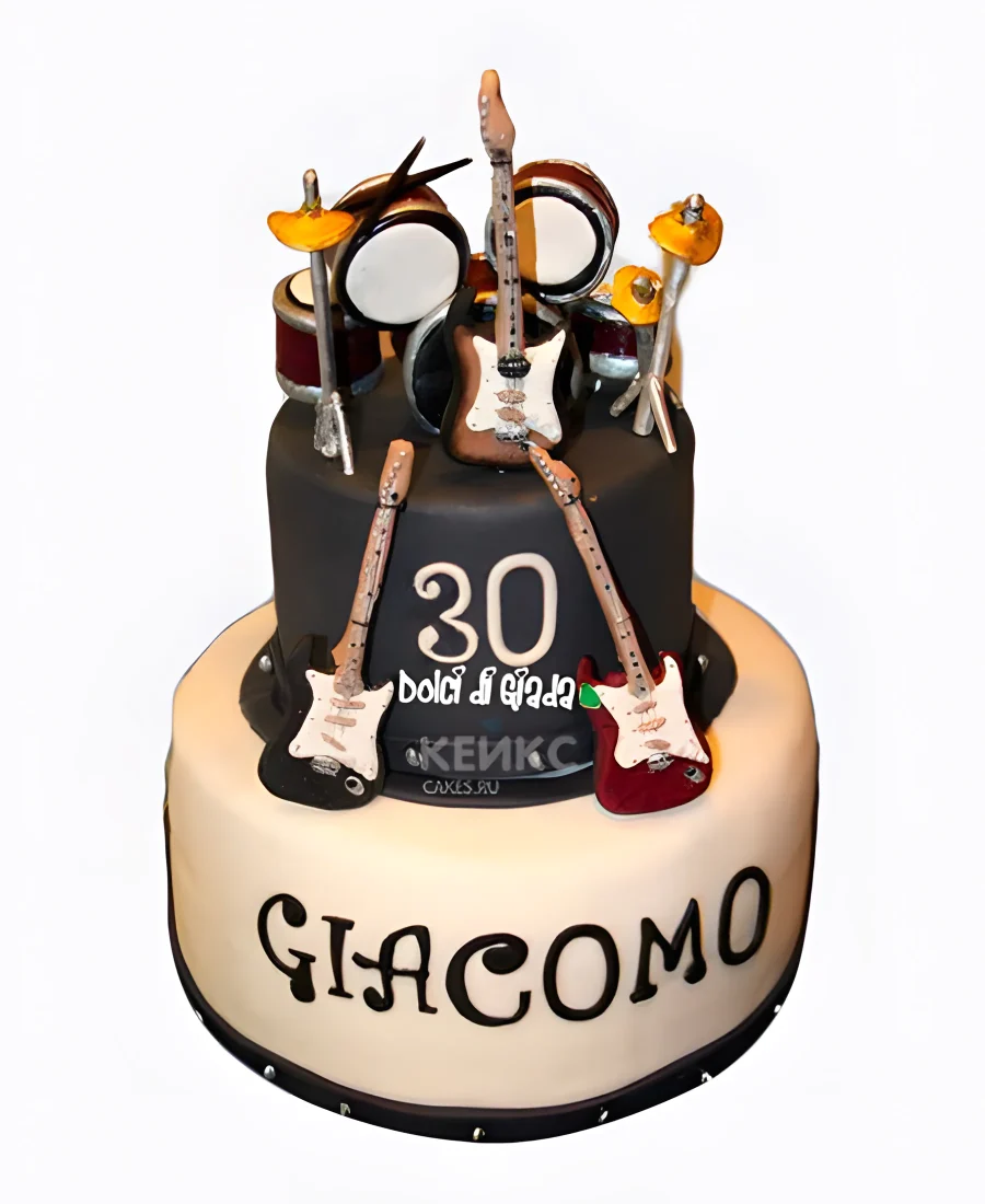 Эффектный торт музыканту с гитарой и барабанами