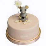 Нежно-персиковый торт с фигуркой мышки и ромашками