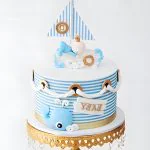 Торт в виде кораблика с китом