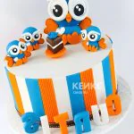 Торт с цветными полосами и совятами