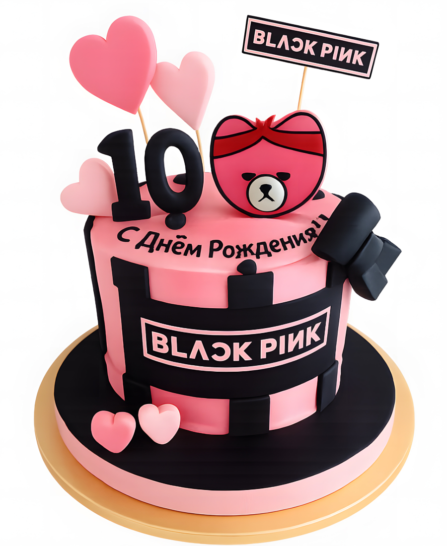 Торт на 10 лет с мишкой Blackpink