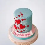 Нежный торт в пастельных голубых тонах создает атмосферу романтики и нежности. Белоснежные сердечки, рассыпанные по всей поверхности, словно танцуют в воздушном вальсе. Гладкая матовая поверхность мастики напоминает шелковую ткань, а изящные аппликации добавляют торту особой утонченности. Каждое сердечко рассказывает свою историю любви, создавая гармоничную композицию, которая завораживает своей чистотой и элегантностью.