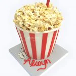 Этот яркий 3D-торт в виде стакана с попкорном моментально создает праздничное настроение! Белоснежная мастика имитирует бумажный стаканчик, из которого эффектно «высыпаются» разноцветные шарики попкорна. На переднем плане – объемная цифра «14», выполненная в насыщенных синих тонах с блестящими акцентами. Контрастная цветовая гамма (белый, желтый, синий) и динамичная композиция делают торт настоящим центром внимания. Детализация складок на стакане и фактура попкорна выглядят удивительно реалистично.