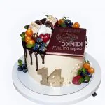 Торт на 14 лет с шоколадными подтеками и ягодами