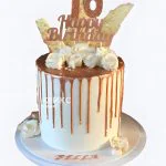 Торт на 16 лет девочке с розами из мастики и карамельными подтеками
