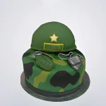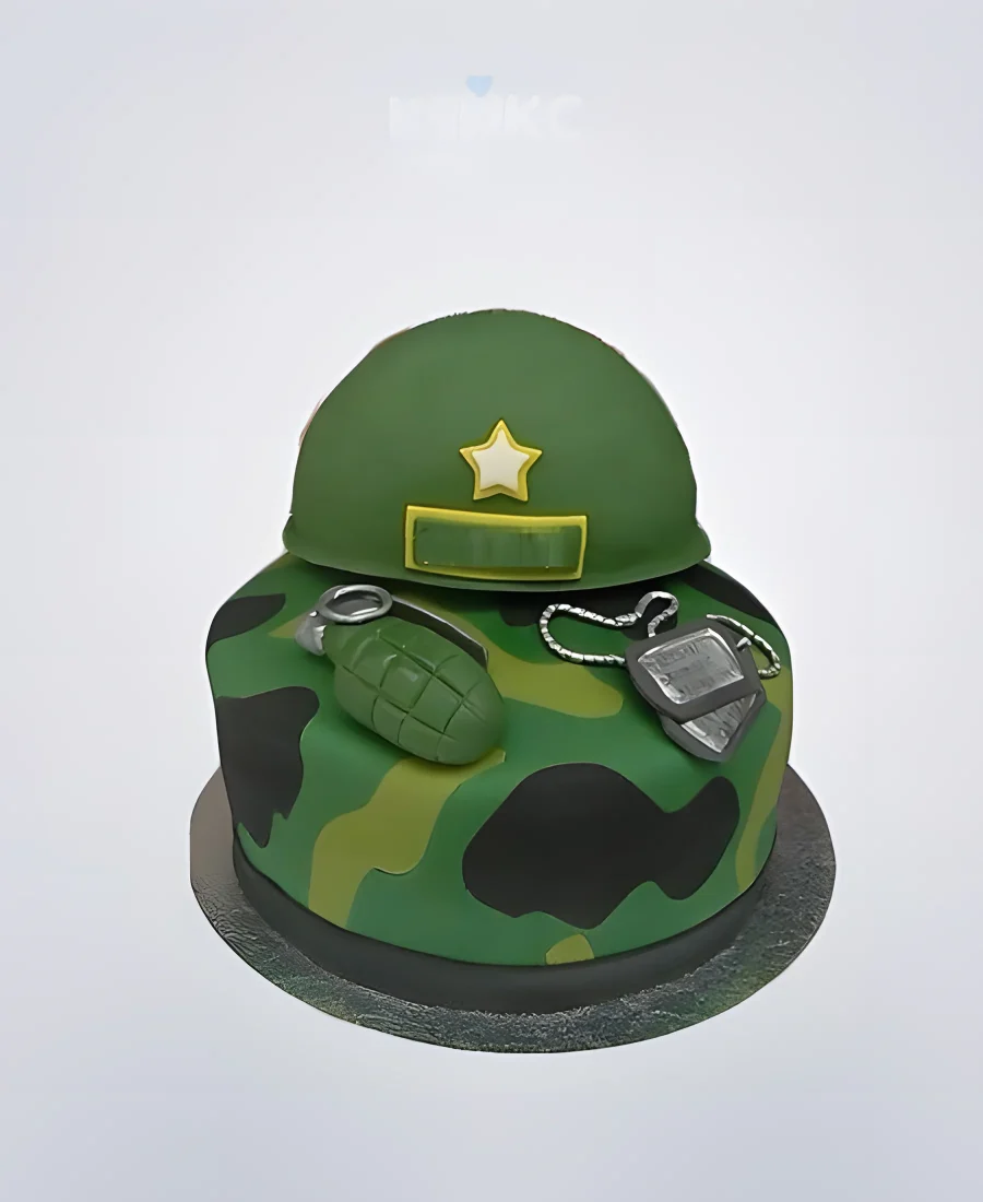 Зеленый торт военному с каской и гранатой
