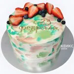 Торт на 23 февраля в пастельных тонах с ягодами клубники