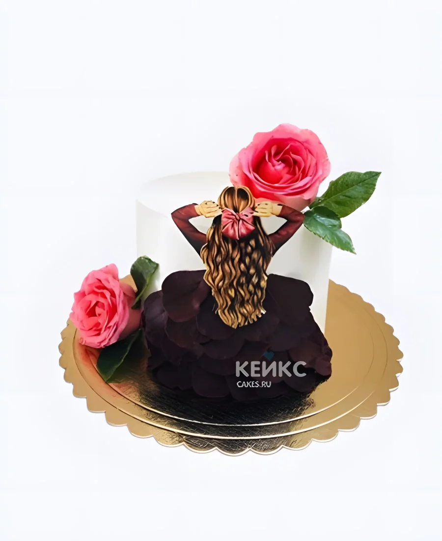 Торт на 25 лет с девушкой и цветами