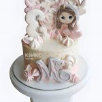 Нежный розовый торт с воздушными безе, создающими лёгкое облако. Золотистая цифра «3» сияет в центре, окружённая перламутровыми жемчужинами. Пастельные тона и мягкие текстуры вызывают ощущение сказки, будто это волшебный замок для маленькой принцессы. Каждый элемент композиции гармонично сочетается, создавая праздничное настроение.