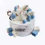 Яркий и радостный торт в нежных пастельных тонах создан для праздника маленькой принцессы. Основа украшена разноцветными кубиками с цифрами и буквами, будто собранными детскими ручками. На вершине – очаровательный слоник в розовой короне, окруженный воздушными облаками из мастики. Голубые, розовые и персиковые оттенки создают ощущение сказки и детской мечты. Простые, но выразительные детали делают этот торт настоящим центром праздника.