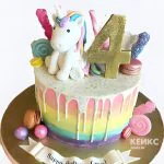 Торт на 4 года из мастики с единорогом и радугой