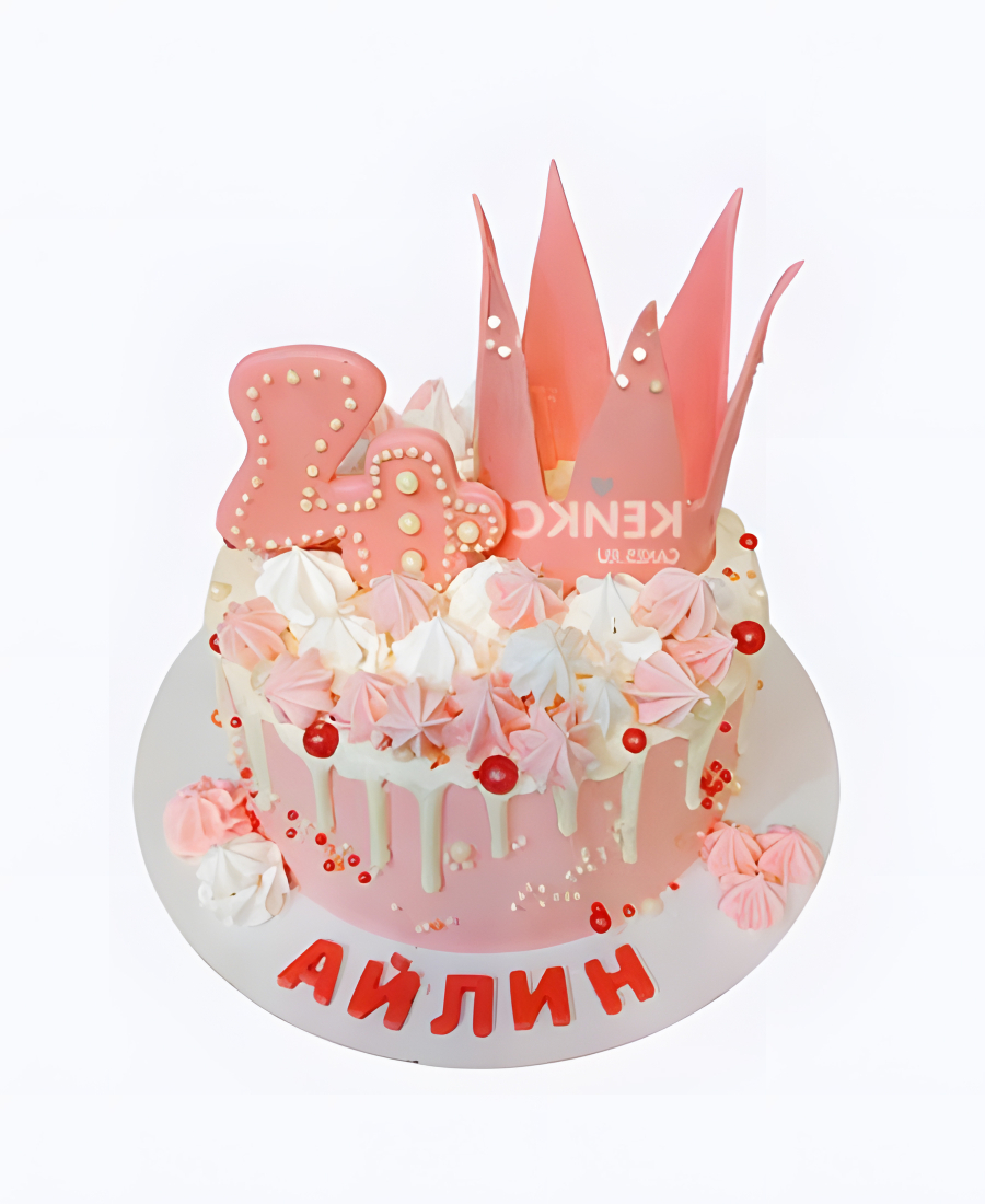 Торт на 4 года с короной и безе