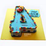 Торт на 4 года в виде цифры с машинкой