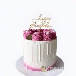 Если вы ищете уникальный подарок своей половине — этот элегантный и изысканный двухслойный праздничный торт — идеальный выбор! Его нежное кремовое покрытие и воздушный дизайн дополнены фиолетовыми оттенками и эксклюзивным декором, в том числе орхидеей и хризантемой сверху и стильными ягодными украшениями.