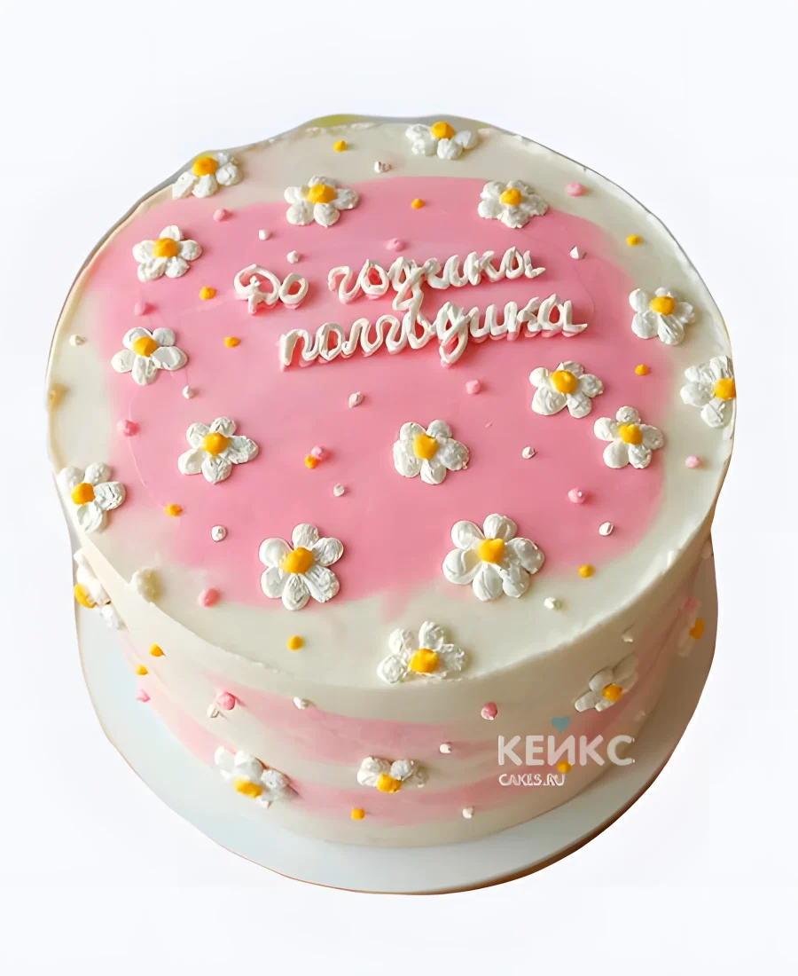 Торт на 6 месяцев девочке бело-розовый ромашки
