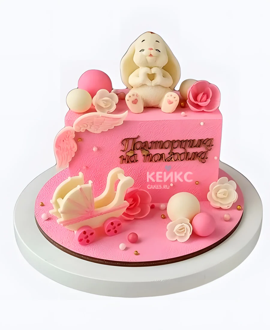 Торт на 6 месяцев девочке Полтортика с зайкой и коляской