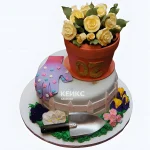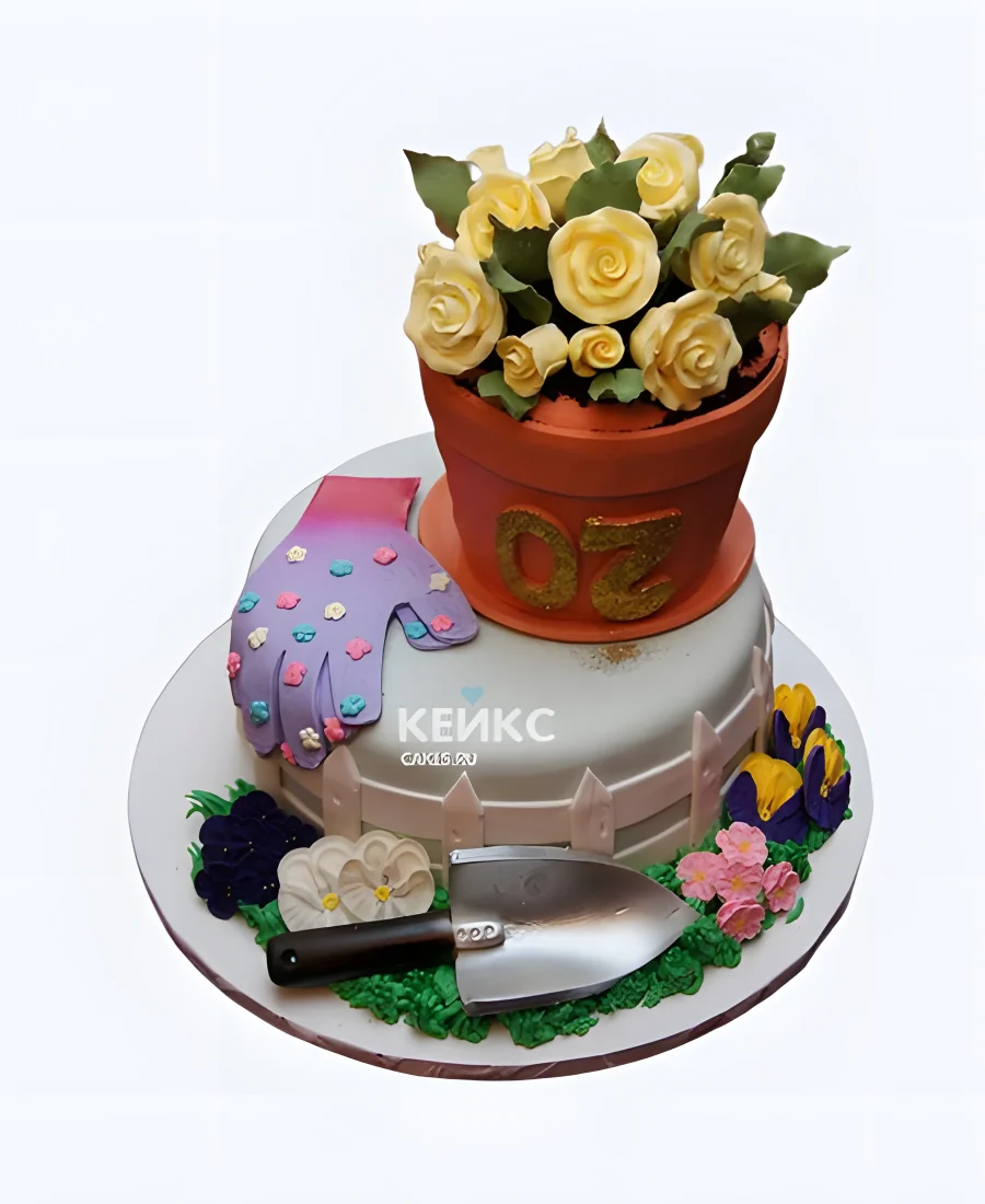 Торт на 70 лет с горшком роз