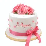 Белый торт на 8 марта с розами и бантом