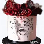 Торт на 8 марта с красными розами и рисунком
