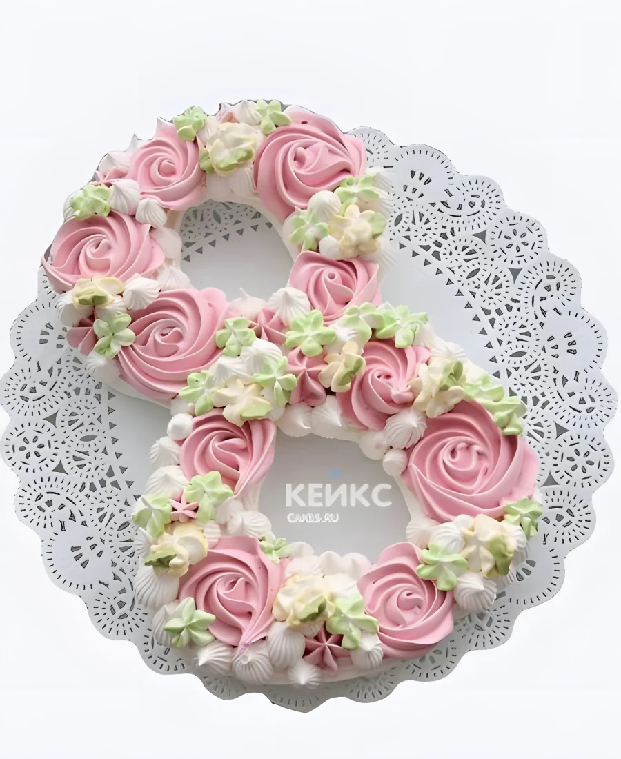 Торт на 8 марта в виде цифры с безе и цветами
