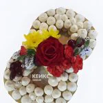 Торт на 8 марта в виде цифры с конфетами и цветами
