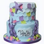 Торт с морскими звездами и водорослями в фиолетовых тонах