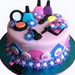 Торт розовый с косметикой и цветами