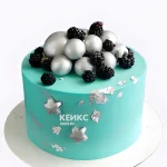 Торт на бирюзовую свадьбу с серебристыми шарами