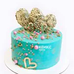 Торт на бирюзовую свадьбу с золотыми сердцами