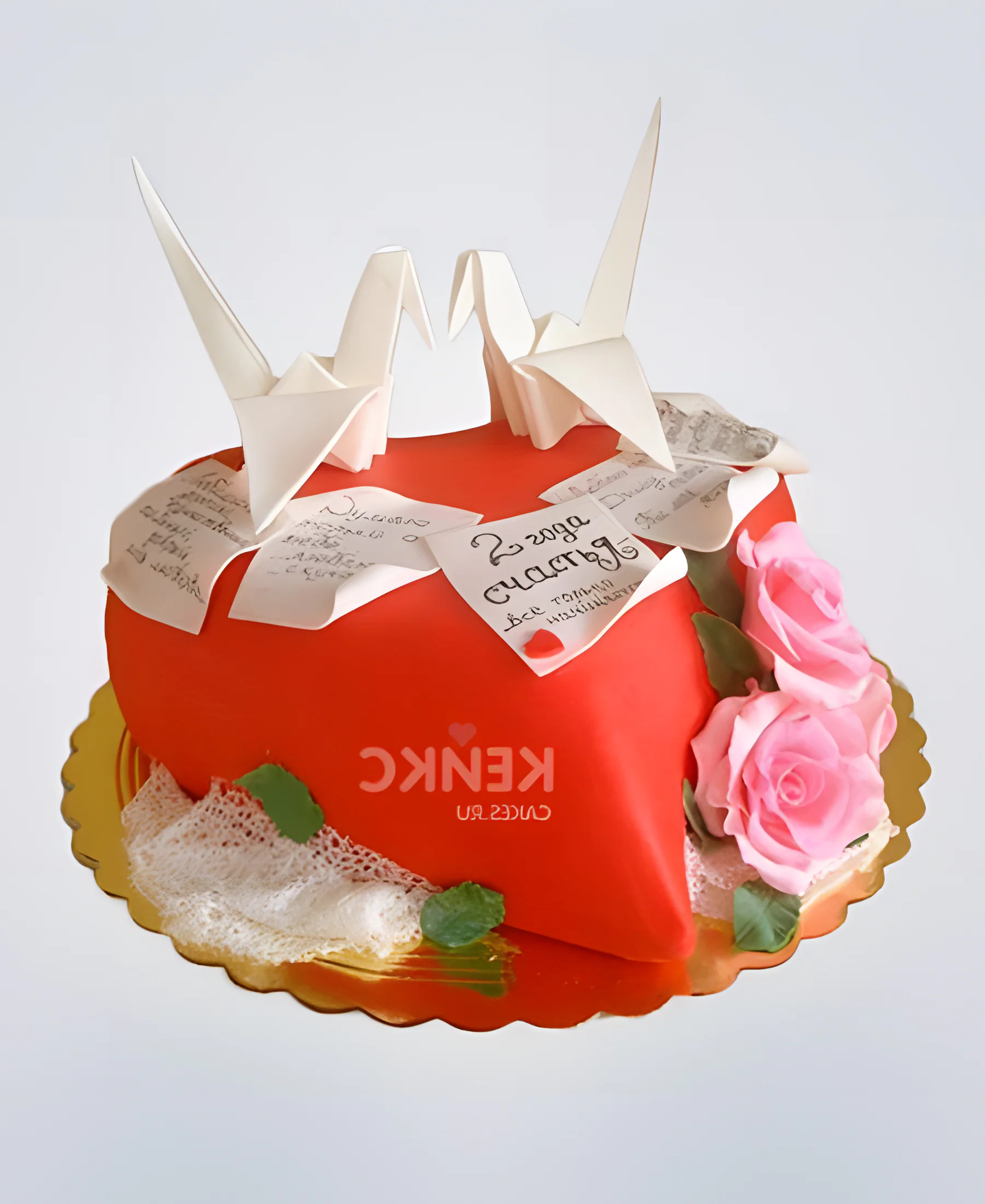 Необычный торт на бумажную свадьбу с оригами