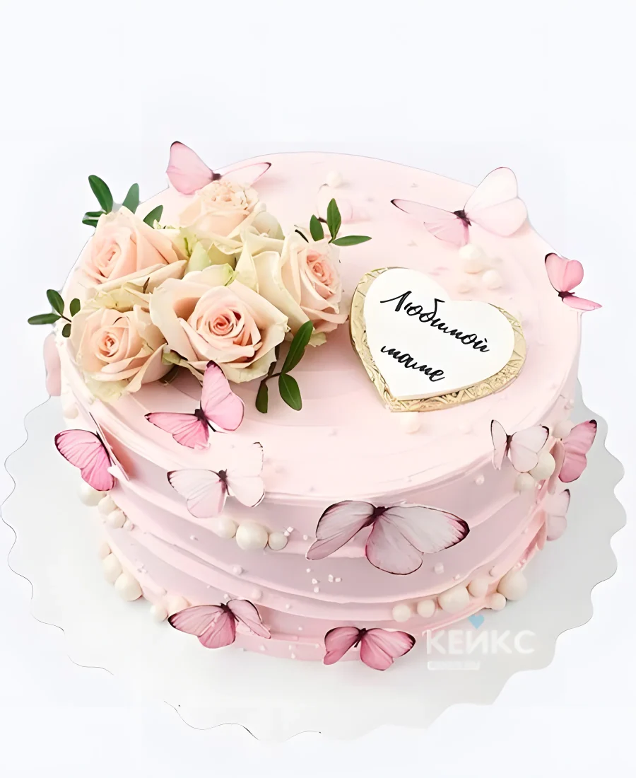 Торт на день матери с бабочками цветами