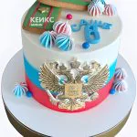 Яркий праздничный торт в цветах российского флага сразу создает атмосферу патриотичного торжества. Фотопечать с изображением герба и триколора делает его особенно нарядным. Сочетание белого, синего и красного в декоре выглядит гармонично и празднично. Торт украшен контрастными кремовыми полосами и звездами, что добавляет ему динамики. Такой торт станет центральным элементом детского праздника в День России, подчеркивая важность события.