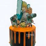 Торт на день рождения аниме Человек-бензопила черный с подтеками