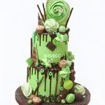 Торт со сладостями в зеленых тонах