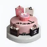 Розовый торт с подарочными пакетами