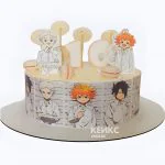 Торт на день рождения с цифрой и леденцами аниме Обещанный Неверленд