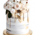 Свадебный торт с кремом, розами и золотой глазурью
