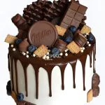 Торт на день рождения с кремом, шоколадом и сладостями