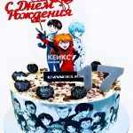 Торт на день рождения с печеньем и фотопечатью аниме Евангелион