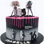 Торт на день рождения с розовой глазурью аниме Данганронпа