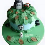 Этот торт — настоящая ода аниме-эстетике! На белоснежной мастике рассыпаны нежные зеленые листочки, будто сошедшие с экрана любимых аниме. Их изящные формы и натуральные оттенки создают ощущение весеннего сада. Каждый листик тщательно проработан, добавляя торту глубину и динамику. Сдержанная цветовая гамма в бело-зеленых тонах выглядит свежо и современно. Торт словно сошел со страниц манги — лаконичный, но выразительный, с тонкой отсылкой к японской анимации.
