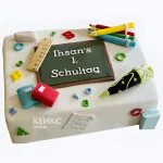 Торт на День учителя прямоугольный из мастики с канцелярией