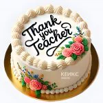 Этот элегантный круглый торт выполнен в нежных пастельных тонах, создающих атмосферу уюта и тепла. Основной акцент — пышные кремовые розы, которые словно расцветают по всей поверхности. Их мягкие лепестки выглядят настолько реалистично, что кажется, будто можно почувствовать их бархатистую текстуру. Аппликация добавляет торту изысканности и делает его особенно праздничным. Сдержанная цветовая гамма и плавные линии декора передают чувство благодарности и уважения, делая этот торт прекрасным символом признательности.