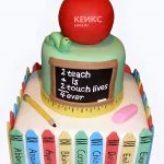 Торт на День учителя с яблоком и заборчиком из карандашей